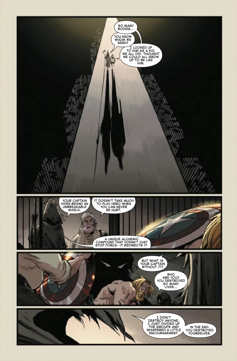 “Alguém muito próximo do Falcão de Aço está morto! Mas quem é? E é culpa de Falcão de Aço? Mais importante, o novo Falcão cruzará a linha que nenhum herói deveria cruzar?“